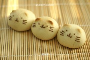 出炉后晾凉,然后融一点点巧克力放在裱花袋里,剪一个小小口,画出鼻眼即可。
