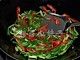 把炒好的腊肉放进去,翻炒3分钟左右后先装盘。