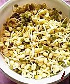 锅中烧水,水开后放入绿豆芽焯1分钟;