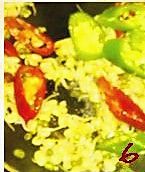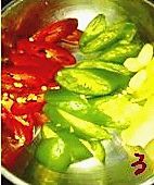尖椒洗净、去蒂、斜切成丝,蒜切片,姜切丝;