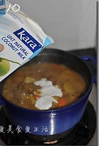 开盖,加入步骤4炒好的蔬菜块,加入三块咖喱块,搅拌煮开,加盖再焖煮10分钟。
