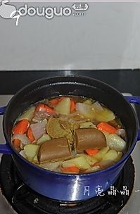 往锅中加入足量水,烧开,撇去浮末,加入一汤匙料酒。
