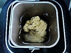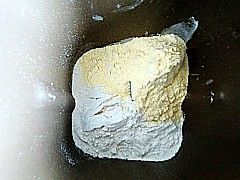 面粉加入玉米粉和酵母放入搅拌桶中。