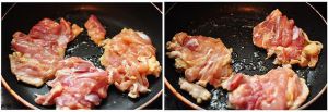 如果是不粘锅,锅中不放油,锅烧热下鸡肉,鸡皮向下小火慢煎;