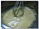 将鸡蛋、水、食用油一起放入大容器里,用打蛋器打匀