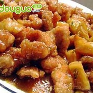 排骨切小块,用少许的盐和淀粉抓匀。 锅烧热,倒入一碗的油,油不用烧热,放入排骨,用中高火炸酥。 捞起放入调好汁的碗里,盖住,使劲摇几下就可以装盘了。