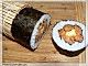 注:1)蛋皮的卷法:蛋液加盐调匀。锅热油少许,倒入薄薄一层蛋液,成形后用筷子顺势卷起,成圆筒。我用的是方形锅,圆锅也可,做出来的蛋皮卷如果太长,用刀切成跟海苔同样的长短即可。