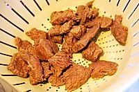 将切好的牛腩放入凉水锅中,大火烧开,煮2分钟左右,待牛腩中的血污全部煮出后,捞出冲净浮沫备用。