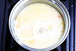 待蘑菇面酱汤开锅后,加入100克奶油。