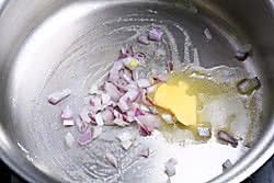 锅烧热,锅里加少许黄油,炒洋葱碎