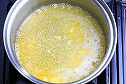 第一步,黄油炒面找一个厚底锅座在火上(薄的锅容易糊底),将100克黄油在锅中融化