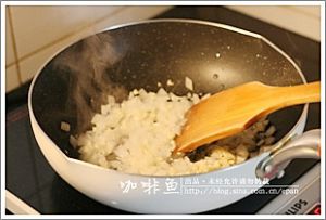 炒锅入油,冷油放入洋葱、蒜炒香;