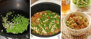 排骨饭煮好后,开盖把青豆和玉米到在米饭上,再盖上盖子焖几分钟,让米饭和青豆,玉米的味道更融合