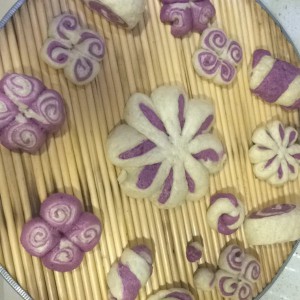 一个一个做好,直接放在蒸屉的盘子上,全部进烤箱,再放一盆开水,二次发酵。至两倍大,蒸屉进锅。开始蒸