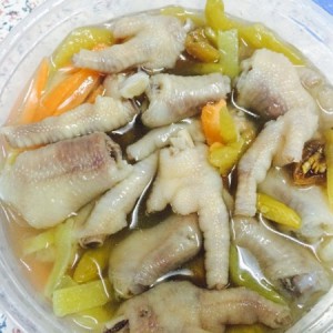 把鸡脚趾全部去掉!切小块的!然后放水里煮10分种