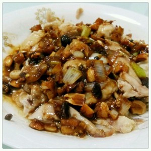 4.把酱汁浇到去骨切好的鸡腿肉上,完工!
