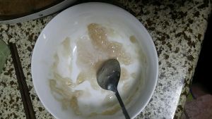 藕粉冲好,如果是原味的可以加一点糖口感更好 想起来拍得时候就剩这一点了凑活看吧