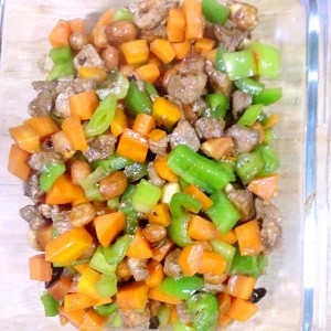 胡萝卜洗净切成小块,蔬菜切小是为了减少烹饪时间,更入味。