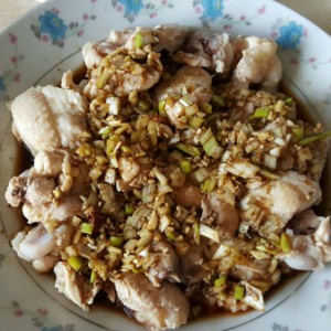 煮鸡腿或冰镇鸡腿的同时准备小料。葱蒜切末放入碗中,2-3大汤匙酱油,半勺醋,少许花椒面,辣椒油根据个人喜好放就行(自制辣椒油方法请查看我的相关菜谱),少许芝麻,再稍微放一点点糖,中和一下味道。调匀,备用。(自己尝尝味道,自己可以根据喜好调整分量,大体味道就是这几味调料)