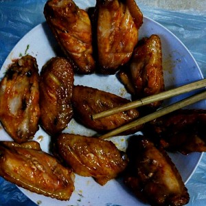 把鸡翅倒入碗中,均匀的粘上料汁。