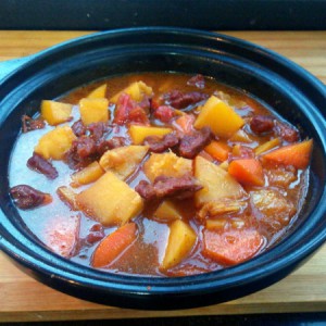 放入土豆、胡萝卜,调盐糖酱油,再炖十分钟即可上桌享用啦!