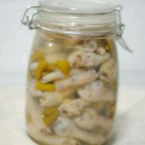 将一瓶香糟卤倒入碗中在放入适量的小米辣(喜欢吃辣的可以把小米辣切碎在放进去),最后把鸡爪沥干放进去