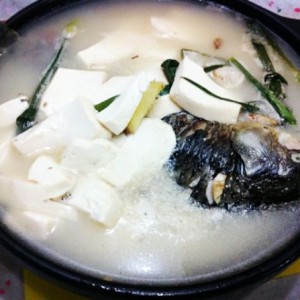 15分钟后沸腾后入豆腐块。大火煮5分钟后小火10分钟
