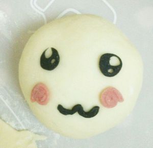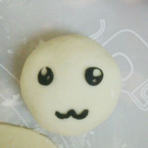 用牙签沾一点清水把眼睛和嘴巴粘到包子上,用牙签把嘴形拉出来