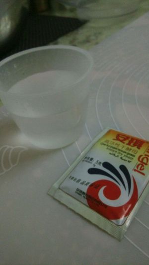 酵母用100克温水化开,在面粉中挖个坑,倒入酵母水,用筷子将面粉搅成絮状