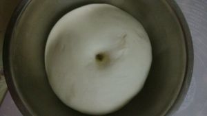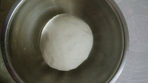 再加150克水揉成光滑面团(我偷懒,扔面包机里,启动了一个15分钟的和面程序)