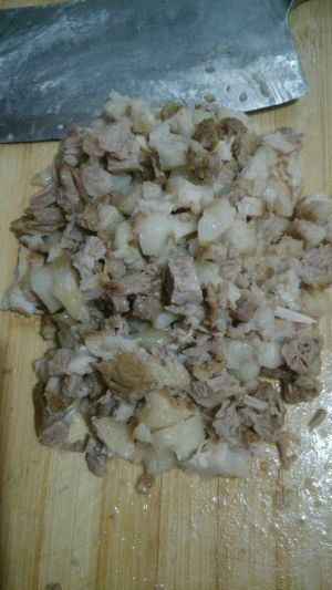 高压锅排气后捞出肉块,切成丁