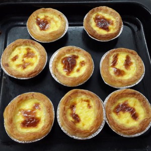 蛋挞皮常温解冻20分钟。牛奶、淡奶油、玉米淀粉、细砂糖,放入盆中搅拌均匀,加热至开,放凉备用。