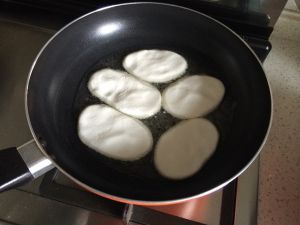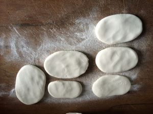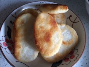做成一个个椭圆的饼,厚薄、大小依各人爱好
