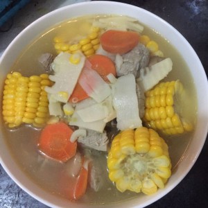 加入切好段的玉米,煮沸后调中火,加入竹笋,炖15到20分钟