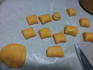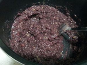 红豆沙煮好 用勺子背捣烂 放糖备用