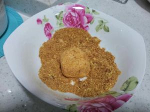 木有面包糠 自己做吧 土司切小块 放烤箱烤成面包干