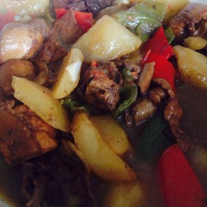 提味。待土豆变软,汤汁浓郁后,加入另一半的葱姜蒜、青红椒、另一半的食盐、少量料酒,炖两三分钟即可出锅。