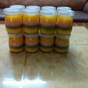 最后一层芒果味!每一层布丁必须要凝固后再加入另一层味道的!