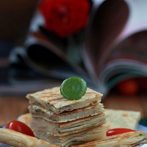 四个圆角用擀面杖呈三角形由内向外擀面就变直角了;