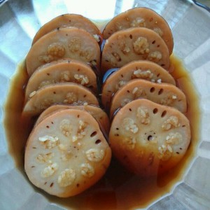 将糯米的两头切掉,用牙签将一头先封住,把糯米用筷子塞进藕的眼里。装完糯米后,将两头都用牙签封住!