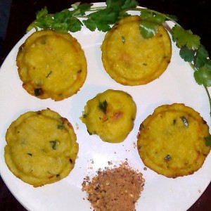 把和好的土豆泥压入模型中或者水杯盖(无模型的情况下)