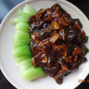 油热爆香蒜末,倒入香菇翻炒,加老抽、生抽、耗油、糖、盐~