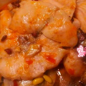 再将前面腌制过的鱼片一个个加入锅里至鱼肉变白后轻轻搅动下至熟就可以了。这里鱼肉熟的很快,不需要很长时间哈,一定不要在鱼片刚刚入锅的时候就搅动。