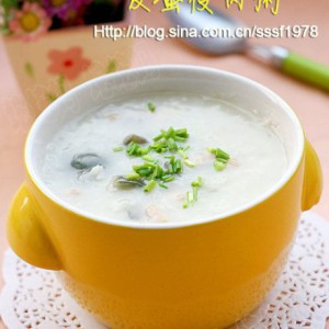 转大火,将皮蛋、肉末下入沸腾的白粥中,加盐,搅拌至肉色断生时,关火,加入少量鸡精和白胡椒粉调味即可。