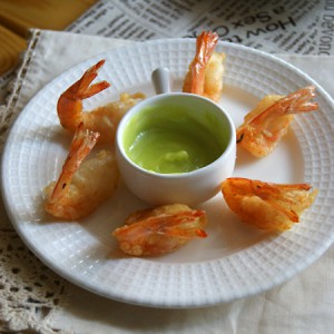 去头、留尾、开背、去虾线,加盐和胡椒粉略腌制一小会儿。