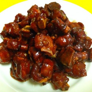 等小排烧至脱骨将其捞出,挑出杂质(香料,葱姜蒜),然后大火将汤汁收浓稠再将小排倒回锅中,翻炒均匀淋香油出锅