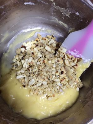 将花生核桃加入搅拌好的液体里,搅拌均匀。