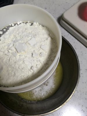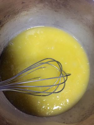 将鸡蛋液+糖粉+玉米油倒入容器里,搅拌均匀。