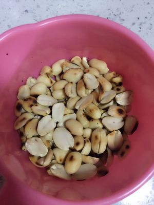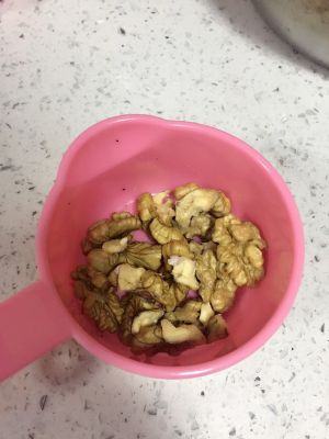 熟核桃夹出后压碎。与花生米颗粒混合。