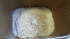 所有材料除黄油和可可粉外全部放进面包机,开启一次和面程序。